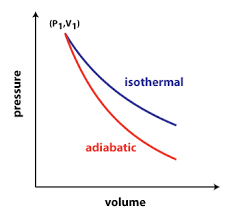 같은 시작점에서 출발하더라도, Final State는 같은 압력에서 adiabatic이 더 적은 부피를 가지고 있다. adiabatic의 팽창량은 isothermal의 40%에 불과하다. heat가 차단되어 있기 때문에 팽창에 필요한 에너지를 Internal Energy에서 끌어오기 때문이고, 이는 결과적으로 온도를 낮추기 때문이다.